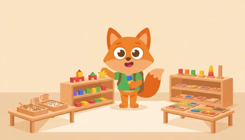 L'organisation Montessori classique divise la classe en aires : vie pratique, sensoriel, langage, mathématiques, culture. En maternelle publique, le plus simple est de transposer en coins thématiques clairement identifiés :
